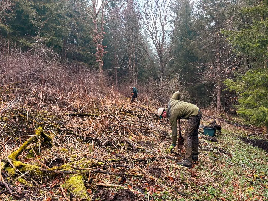 The current stock comprises approximately 6 hectares of spruce (30–35 years old). In addition, there are groups of deciduous trees including pedunculate oak, sycamore maple, and European beech. The challenge: in the eastern part, gaps have formed due to site conditions. We deliberately focus on climate-resilient tree species such as pedunculate oak and European beech to promote biodiversity. Healthy soils and site-appropriate tree species ensure that the forest can optimally adapt to changing climate conditions.